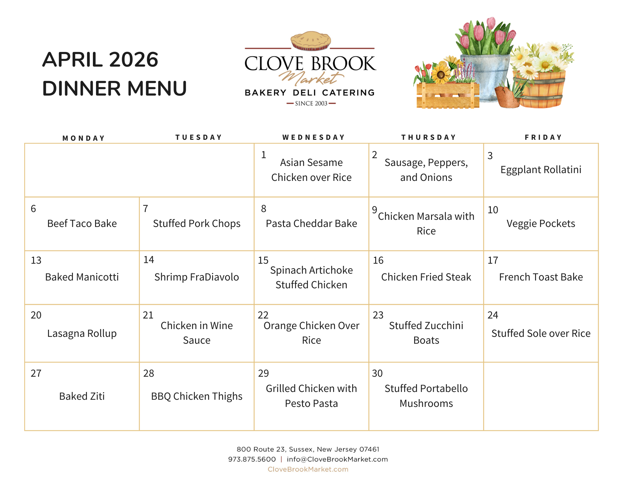Dinners at Clove Brook include ready-to-serve meals prepared on a monthly calendar basis. Locals can choose from a variety of homemade items when in a rush, or looking for an easy dinner for the family. Community members looking to give a “gift” meal are able to do so through Clove Brook Market.